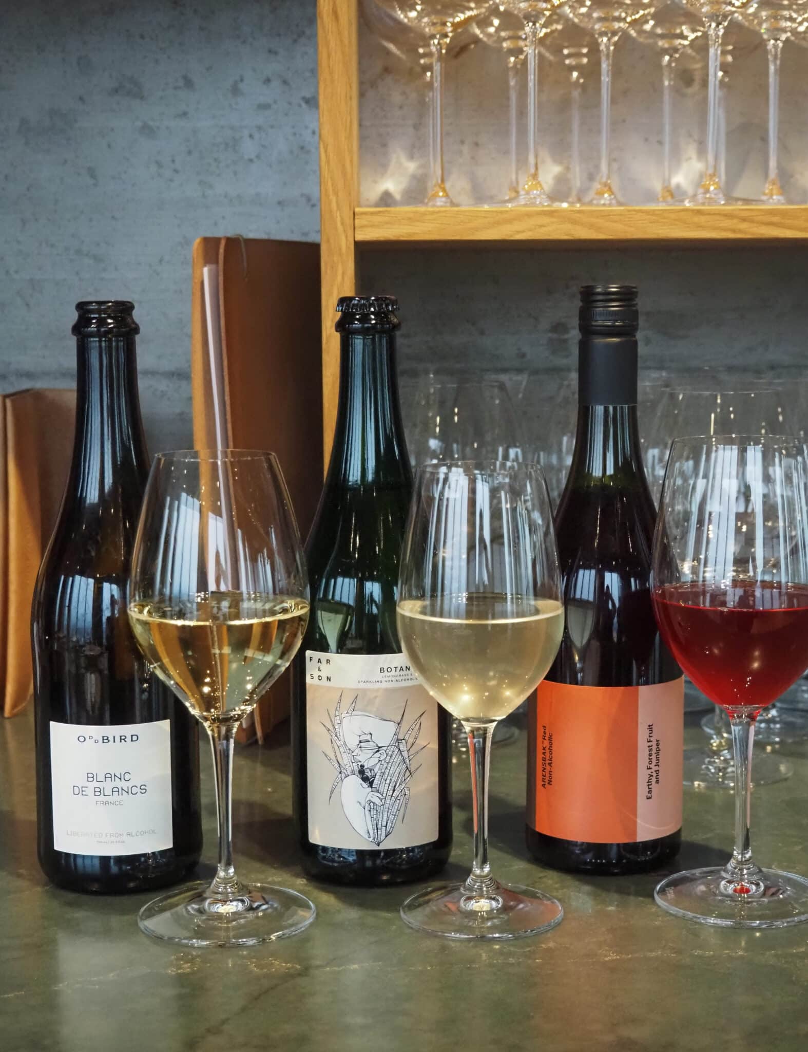 Vores restaurantchef Niels, har lagt sig i selen for at finde både spændende og smagfulde vin-alternativer uden alkohol, og du får 3 glas – “bobler”, “hvidvin” og “rødvin”, ligesom hvis du havde valgt en vinmenu.